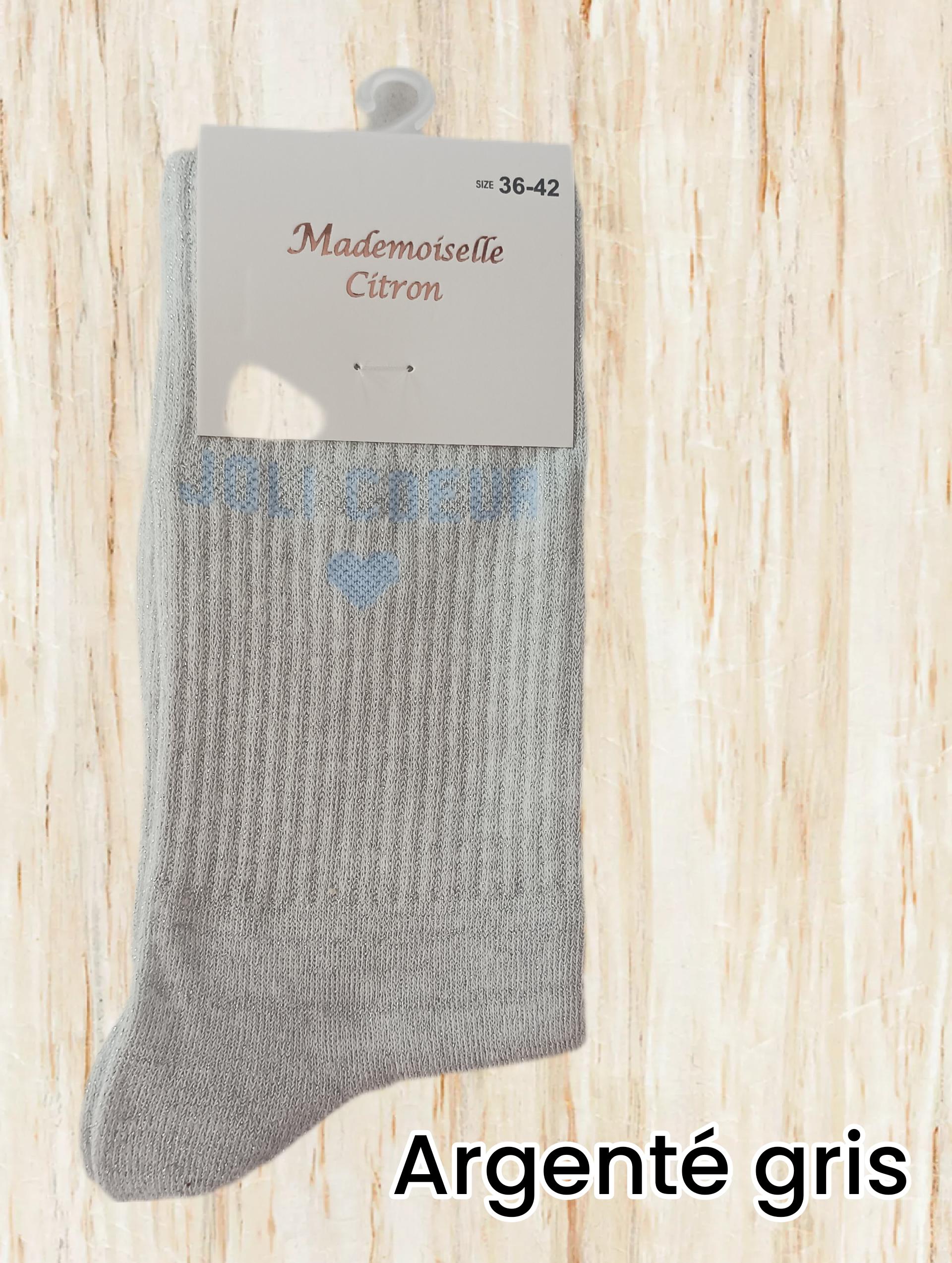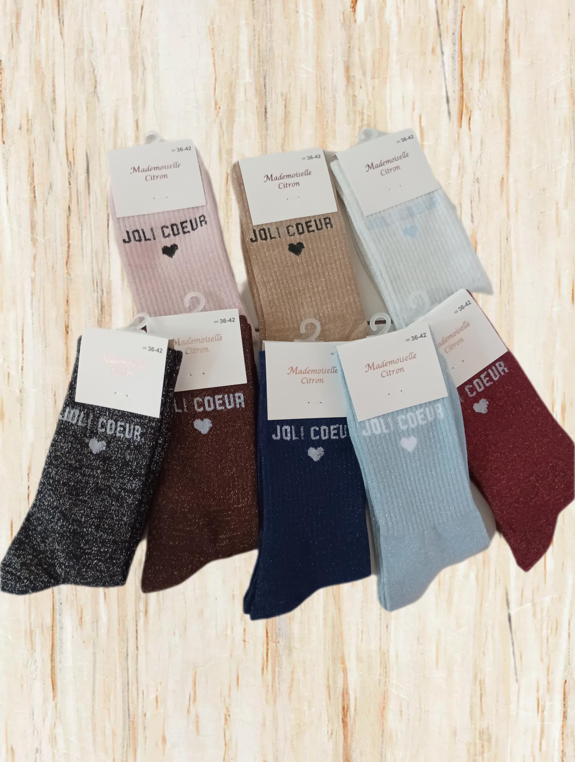 Chaussette brillante à paillette à logo " joli coeur" du 36 au 42.