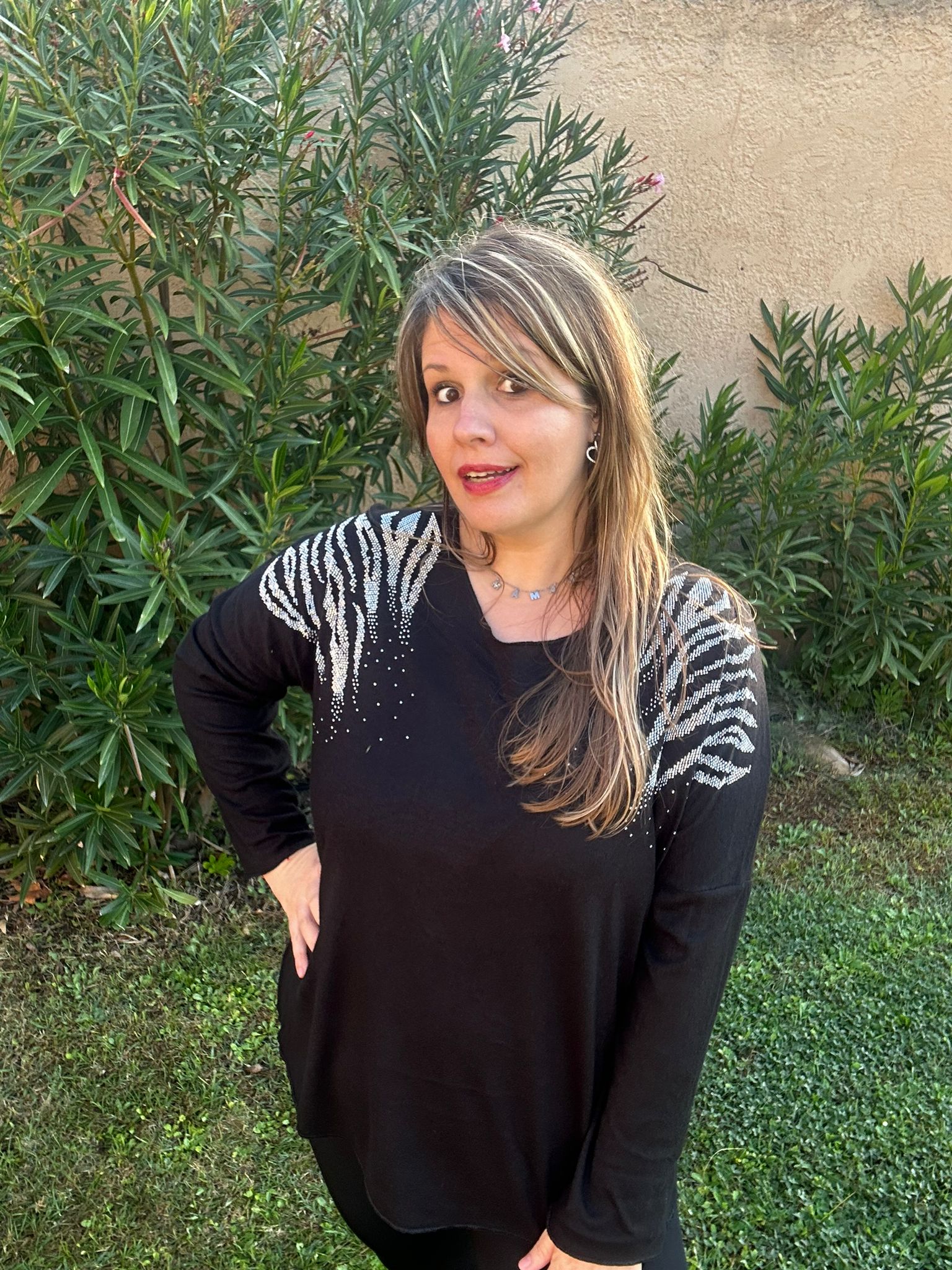 Ce petit pull fin arbore un col en V élégant rehaussé de strass argentés en relief délicatement posés sur les épaules. Sa coupe raffinée et ses détails scintillants en font la pièce idéale pour sublimer vos soirées festives, que ce soit pour Noël ou le réveillon du jour de l’an. Ce modèle allie finesse et éclat pour une allure sophistiquée sans excès, parfaite pour célébrer avec style et distinction.