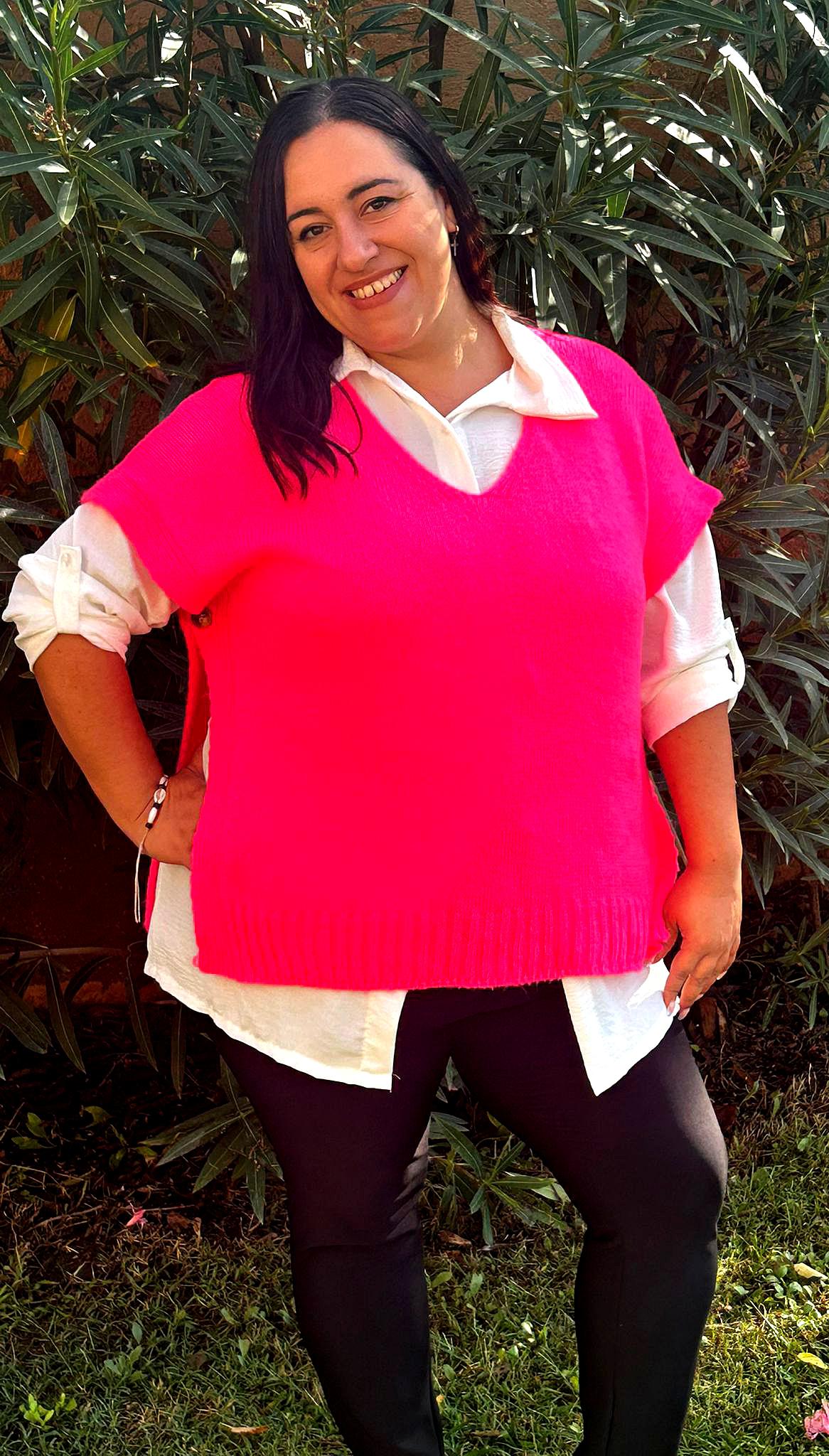 Ce pull sans manche grande taille est la pièce parfaite pour jouer avec les superpositions tout en restant à l'aise. Conçu dans une maille douce et extensible, il offre une liberté de mouvement adapter aux courbes en sublimant la silhouette.
